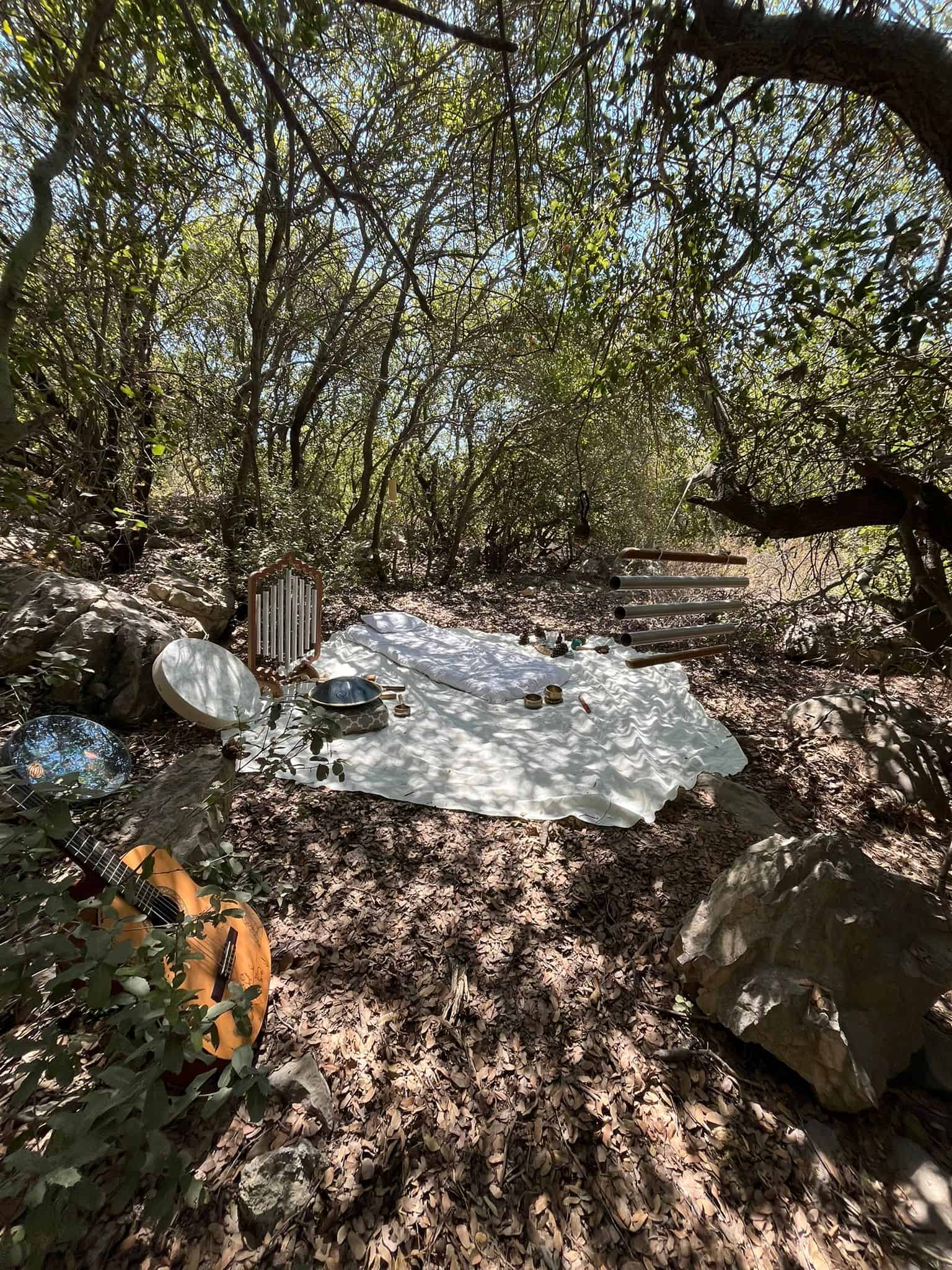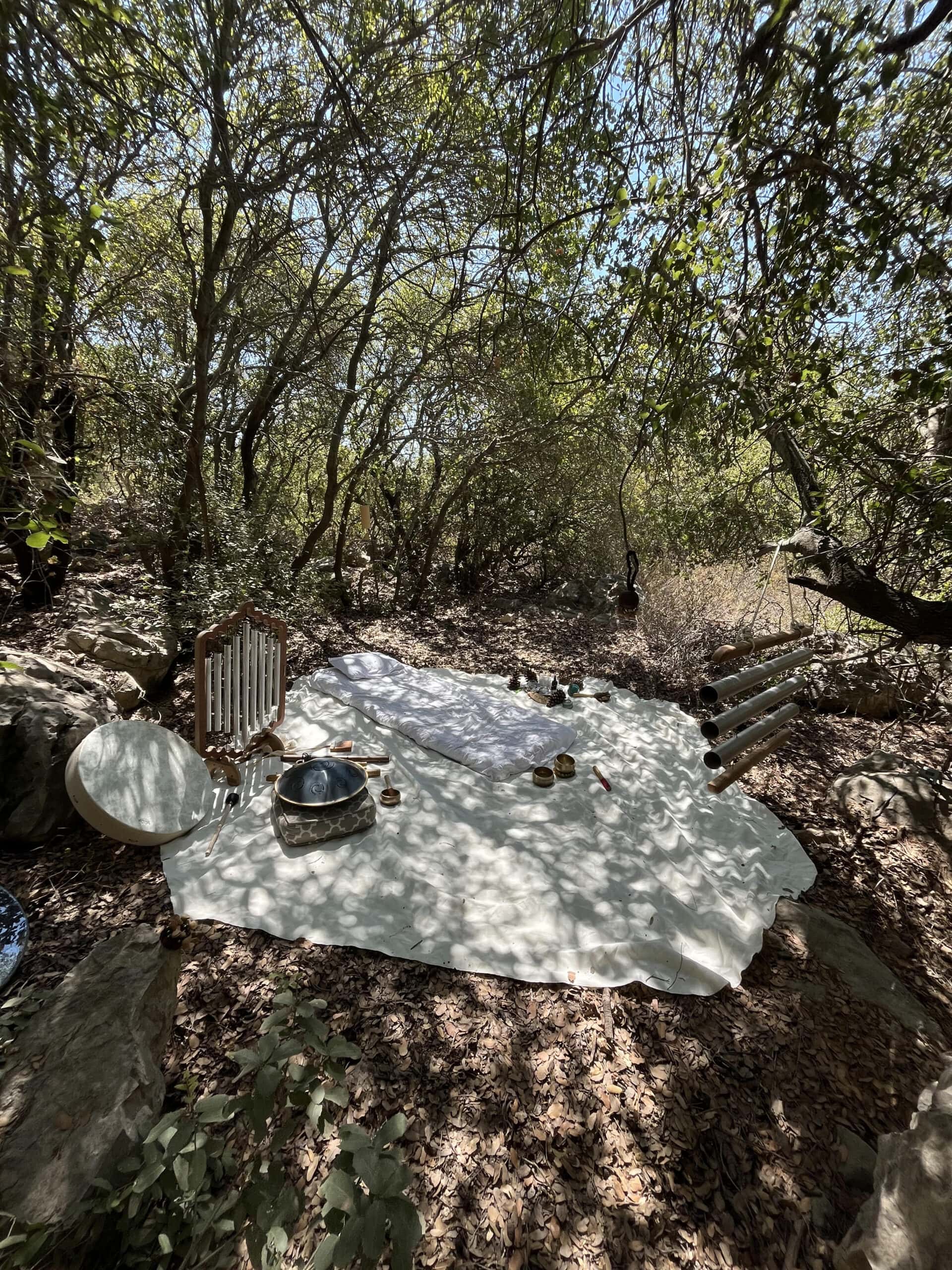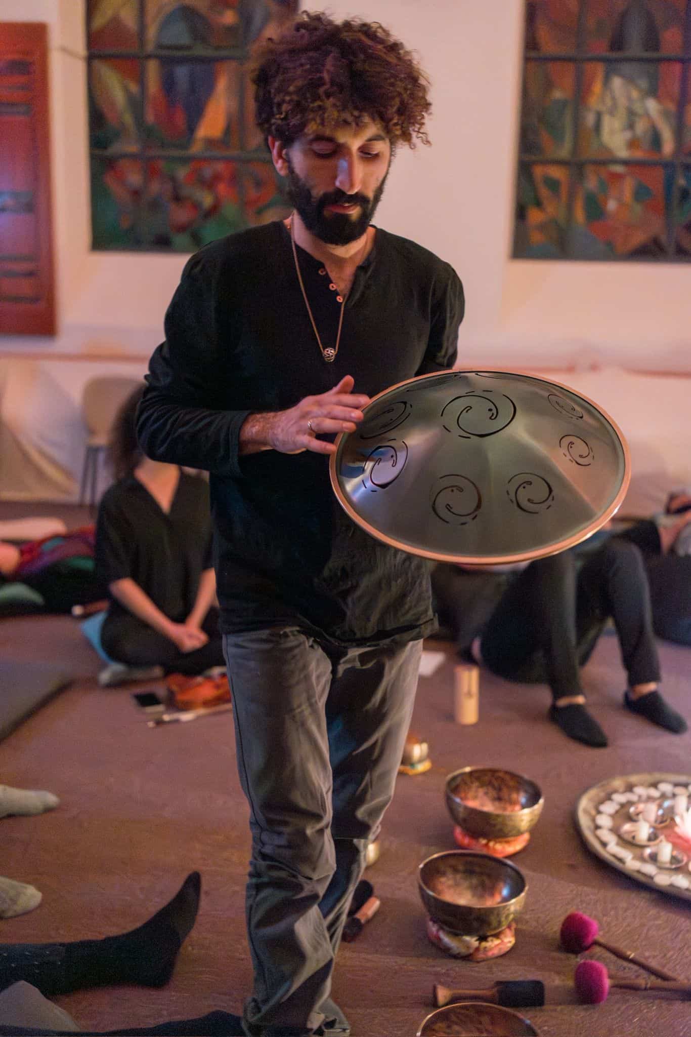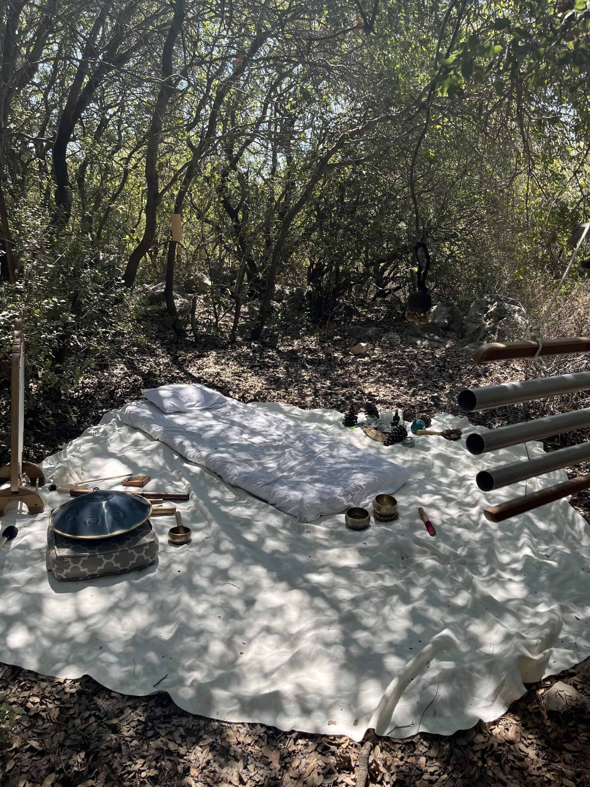 : שימוש בכלי נגינה ממגוון תרבויות המאפשרים למשתתף להרפות לתוך עצמו ולהתמסר למסע של צלילים וויברציות אשר יגעו בו הן מבחינה פיזית – יאטו את גלי המוח יגרו את המערכת הפרה סימפטטית לכדי מצב של רגיעה וריפוי בין שינה לעירות. והן מבחינה נפשית יאפשרו את שחרור האחיזה בזמן ובמרחב לכדי מרחב של חלימה ודמיון בשל היותם עוקפים את השכל והלוגיקה ונוגעים ישר בלב ובאינטואציה הפנימית.